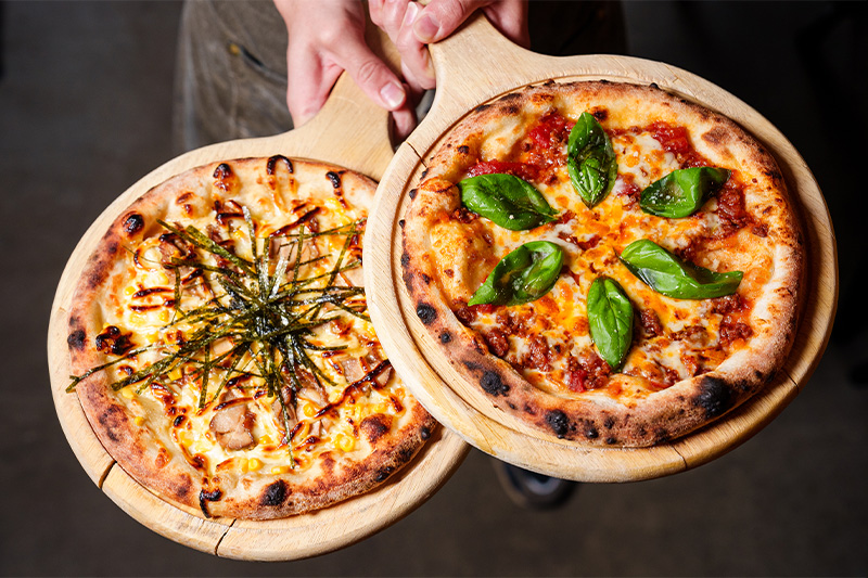 注文が入ってから焼き上げる石窯焼きピザ、