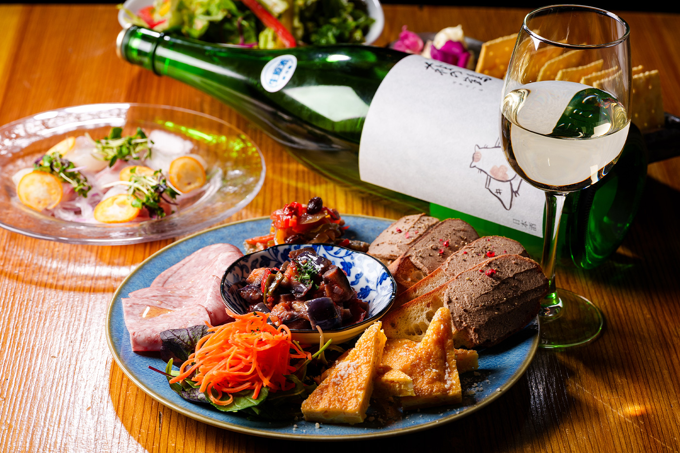 ワイングラスで提供する日本酒と共に