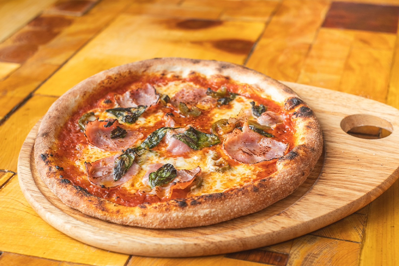 カリカリベーコンとンドゥイヤの辛さがクセになる辛いピザ